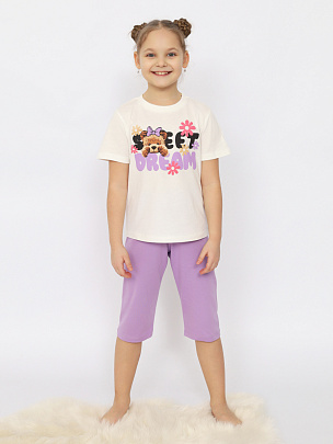 Пижама для девочки (футболка, бриджи) экрю