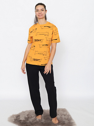 Пижама женская (футболка, брюки) охра