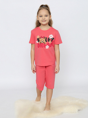 Пижама для девочки (футболка, брюки) коралловая