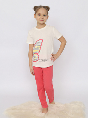Пижама для девочки (футболка, брюки) экрю