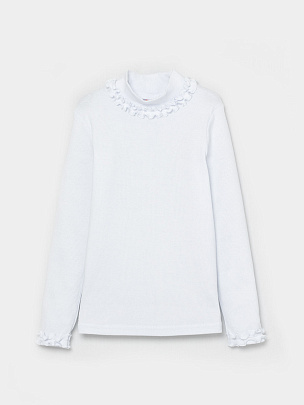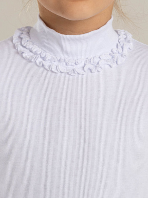 Водолазка из кашкорсе с эластаном. Модель с длинными рукавами и воротником-стойкой. По шву притачивания воротника и шву подшивки низа рукава эластичной строчкой настрочены рюши из основного полотна. Края рюши обработаны микрооверлоком.
